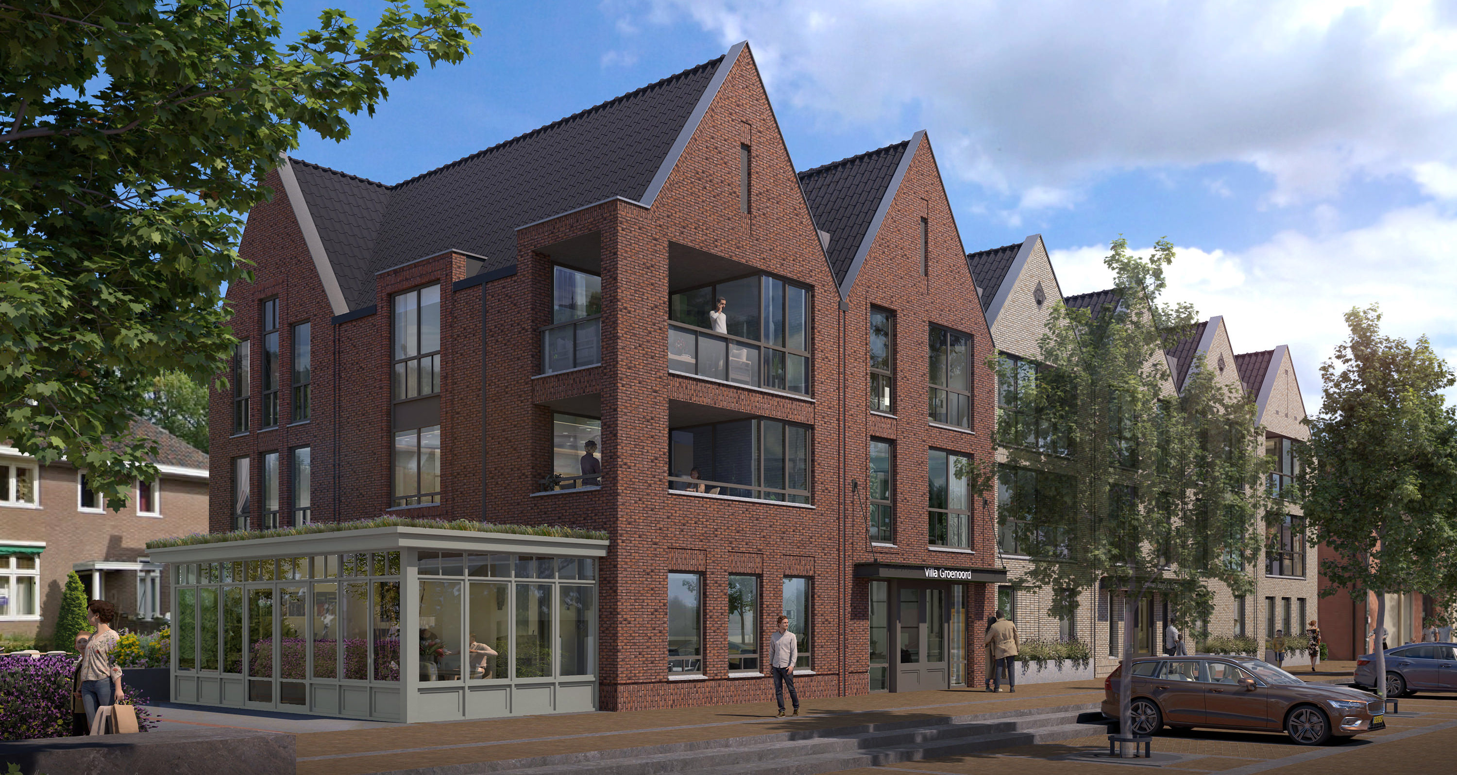 In hartje Ermelo, met alle voorzieningen op loopafstand, verrijst Villa Groenoord. Het plan omvat 16 appartementen verdeeld over twee bouwlagen. De woningen variëren van circa 50 tot 85 m² en beschikken elk over een eigen balkon of terras. In de kelder komen privéparkeerplaatsen en bergingen.